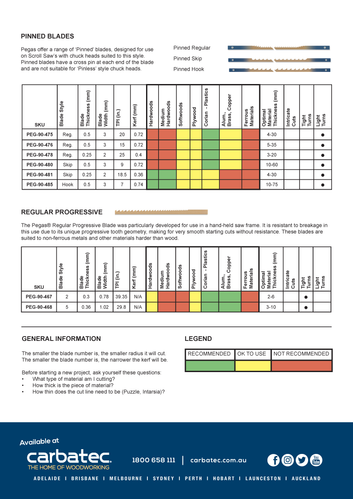 Pgas blades are manufactured in Vallorbe, Switzerland from the best available carbon steels. The teeth are perfectly and equally set (right and left), enabling straight cuts without having to compensate for deviation. They are heat treated after machining, which is the only method that guarantees both toughness and optimum flexibility.With a large range available, we believe they are the unequaled in quality and represent the best blades on the market. Routinely outperforming and outlasting the competition in independant testing and all at exceptional price points! Professionals and hobbyists alike will appreciate what Pgas blades offer you.Make your scroll saw really perform with Pgas blades.
