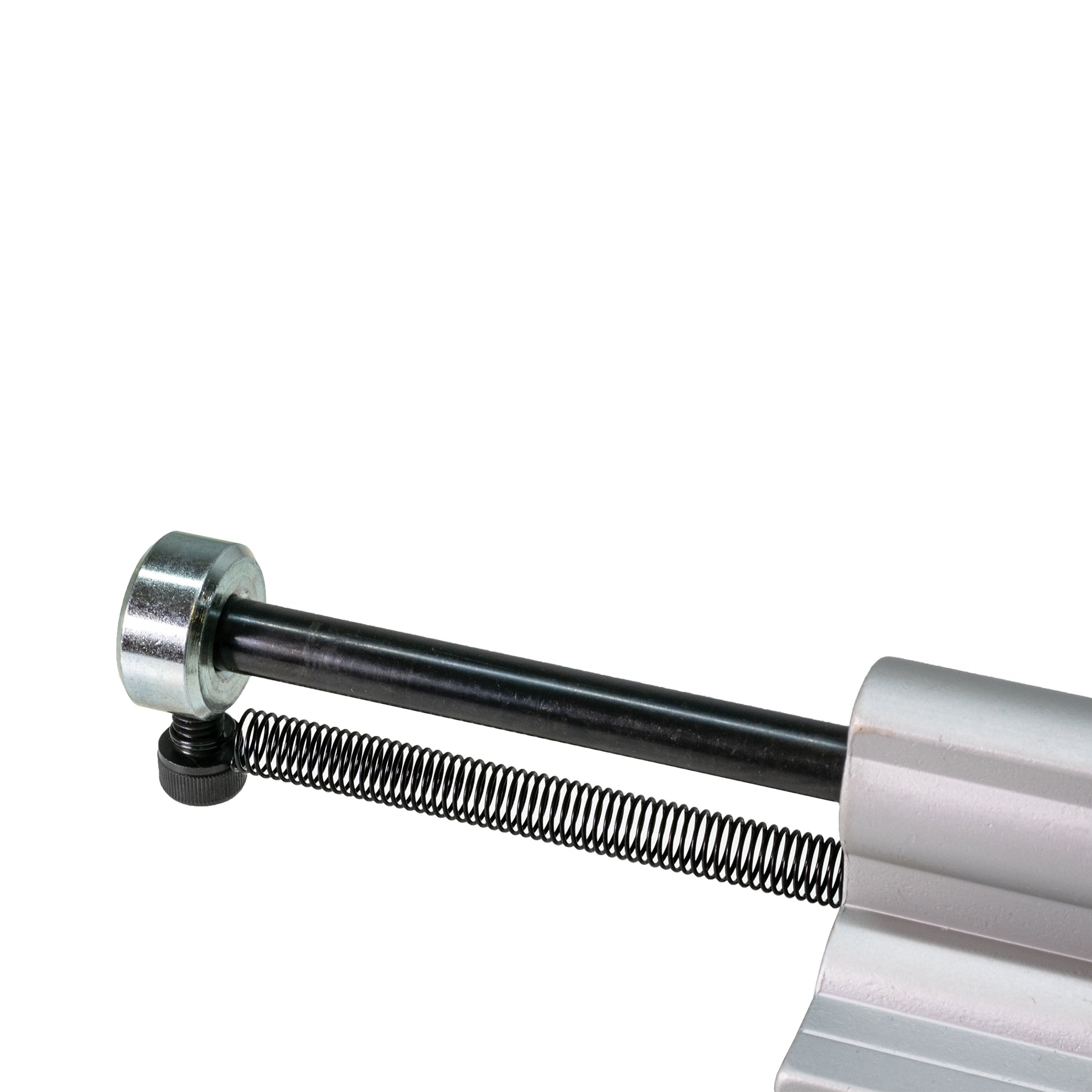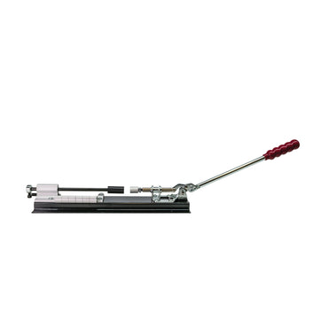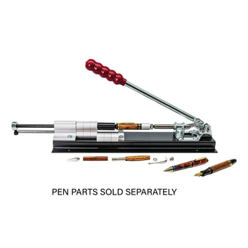 A new and improved way for assembling your pen parts. Simply flip the spacers out of the way and bring back the spring-loaded mandrel for the length of the components into the position. The self retracting mandrel will then apply enough pressure to help holding the components together up against micro-adjustable press jaw. No more screw/unscrew knobs for length adjustments. KEY FEATURES: - Steel handle and pivots deliver up to 300 pounds(136 kg) of pressure - Quick-flip spacers allow pressing different lengths up to 146 mm - Spring-loaded, self-retracting mandrel - Micro adjustable jaw - Easy-to-clamp wide base flange - Large ergonomic handle