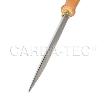 For burnishing cabinet scrapers. Polished steel; cherry handle. Blade length: 160 mm.