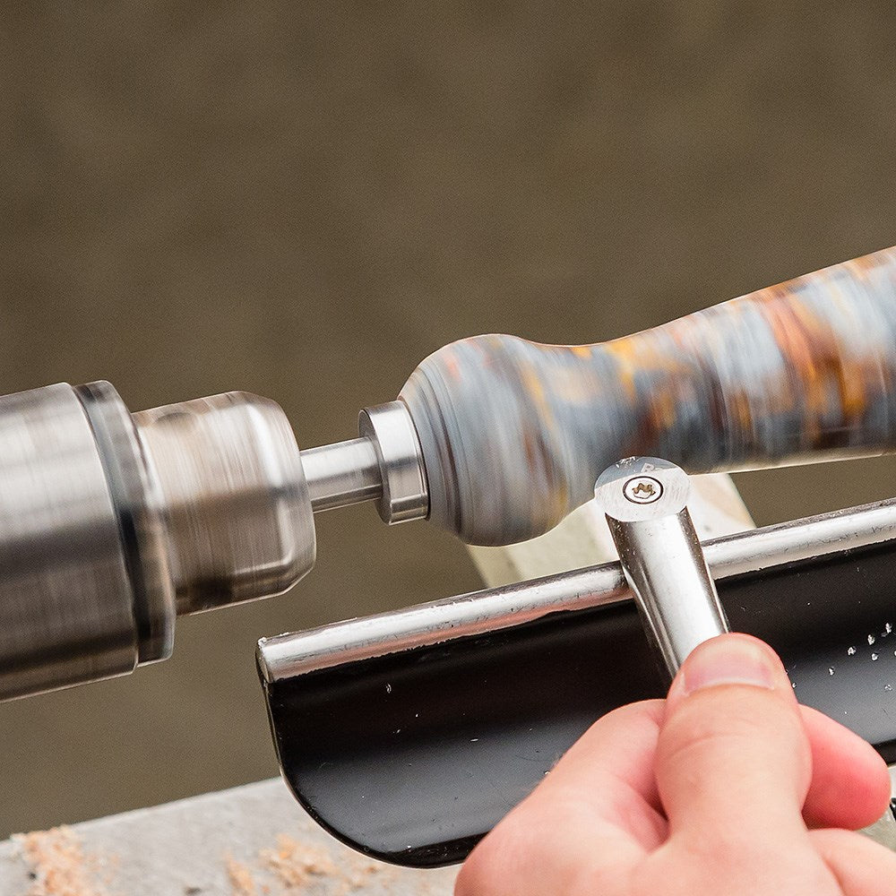 For those turners who have purchased the Cheese Knife or Pizza Server Turning Kits, this Mandrel has the shoulder the same diameter as the knives or cutter making turning these handles easy. These can be turned quickly and easily without the guesswork or measuring.