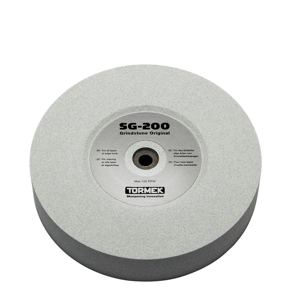 The Tormek Original Grindstone has evolved over the years to offer the best combination of efficient steel removal, smooth surface finish and a long life. This stone efficiently cuts all types of tools and steel qualities including HSS. Tools sharpened on a wetstone grinder only, without heat being generated by speed, will hold their edge longer than a tool sharpened on a typical bench grinder.