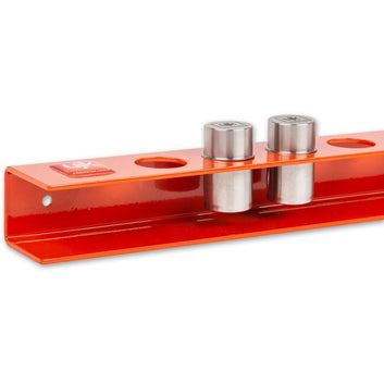 Avoid those where did I put it moments that can waste so much workshop time. The UJK Dog Rack is a place where your favourite pet tools can rest undisturbed until its time for exercise. With this rack on the wall beside your multifunction workbench, you know where your sleeping dogs lie. It has space for up to eight UJK Bench Dogs, Super Dogs, Guide Dogs, Guide Pups, Parf Anchor Dogs etc. or any other 19mm or 20mm diameter bench dog. L 300mm x W 40mm x D 32mm.