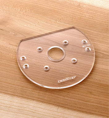 It’s available with predrilled mounting holes to match the base plates of common makes and models of compact routers. To ensure you order the correct version, go to the specifications tab, select the hole-pattern PDF corresponding to your router, and print the pattern at full size (100%).