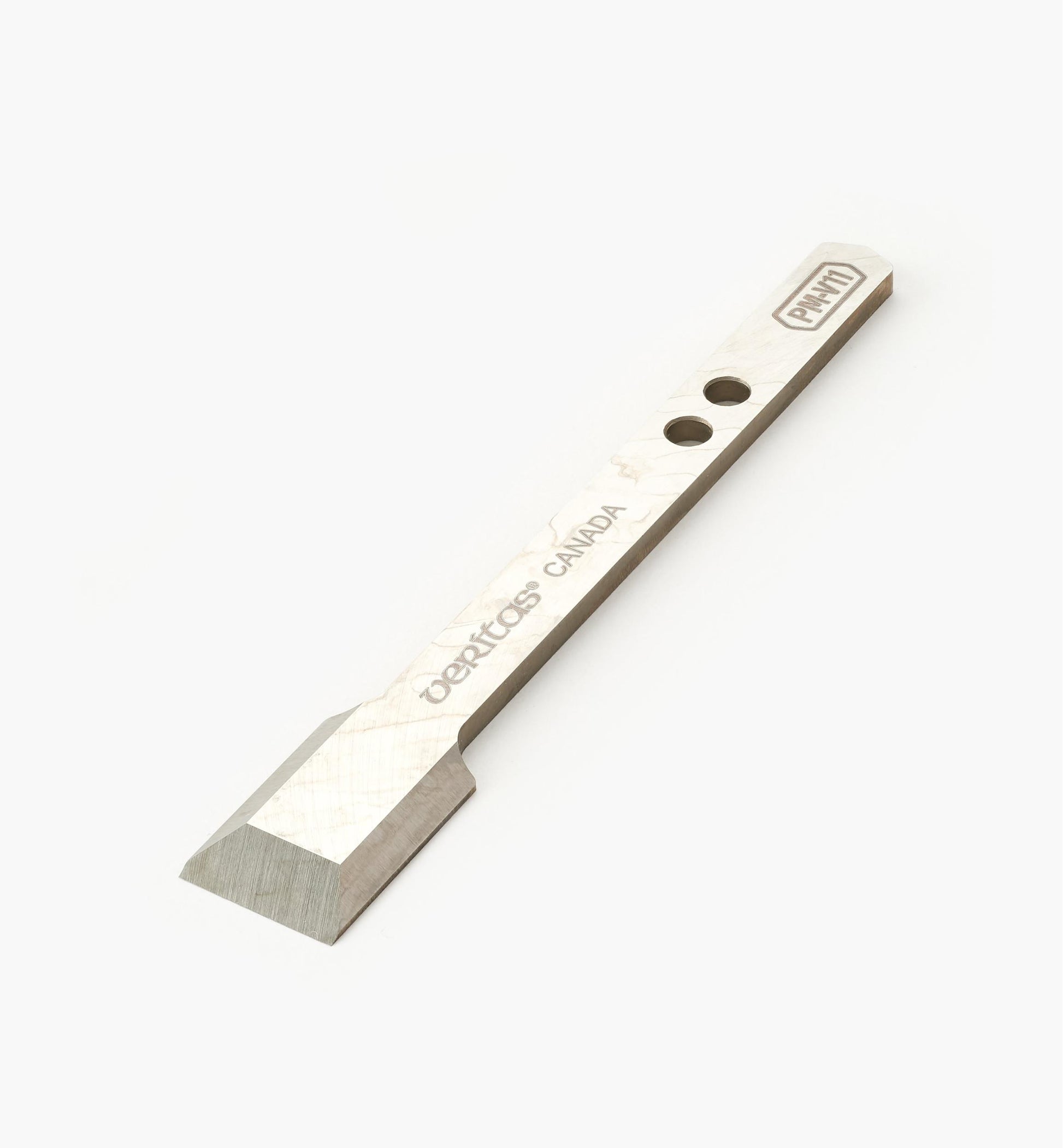 This PM-V11 Blade to suit the Veritas Medium Shoulder Plane sits on a 15 bed, giving its shallow angle. The blade is 17.5mm wide x 3.2mm thick blade, with a 25 primary bevel, with the back of the blade lapped to flat in the working area.