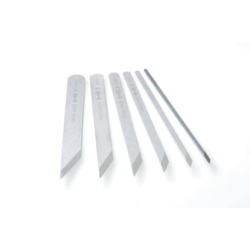 3.5 mm wide double bevel; approximately 45 degree skew. All knives are 160mm long.
