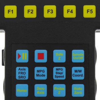 The UCR201 Wireless Jog Pendant is the perfect solution for those with a UCCNC driven machine, that prefer the use of a hand-held control or are more familiar with this setup from previous equipment.The jog is wireless, so cords wrapping around your machine aren't a problem and you can find the best vantage point to control your machine according to the job at hand. Using the jog pendant can make the zero point pick up and other machining functions easier and faster to establish and undertake.
