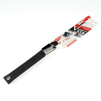 Our 'Next-level' Folding Japanese Pull Saw offering!Zetsaw (Z-Saw) from Japan bring you two New Premium Folding Saws. With a comfortable thick rubberised grip that wraps a solid heavy alloy spine and positive heavy duty locking mechanism, these saws are incredibly effective cutting tools! Cutting on the pull stroke, the extremely sharp impulse hardened teeth provide an aggressive and quick cut that is also extremely fine - they can even plunge cut. These pullsaws would be at home in any handy-persons kit, right through to the fine woodworker. After use, the blade can be safely folded back into the spine for storage or transit. Blade is replaceable and spare blades are available.This is the smaller of the two models. Specifications: