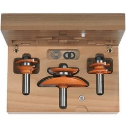 800.521.11 - This set of router bits is designed for use in a router table, and provides all of the bits needed to create doors and drawer fronts, the panels to go into these, and the mechanical locking joint for solid timber drawers.
