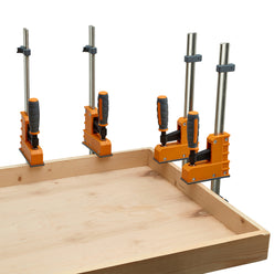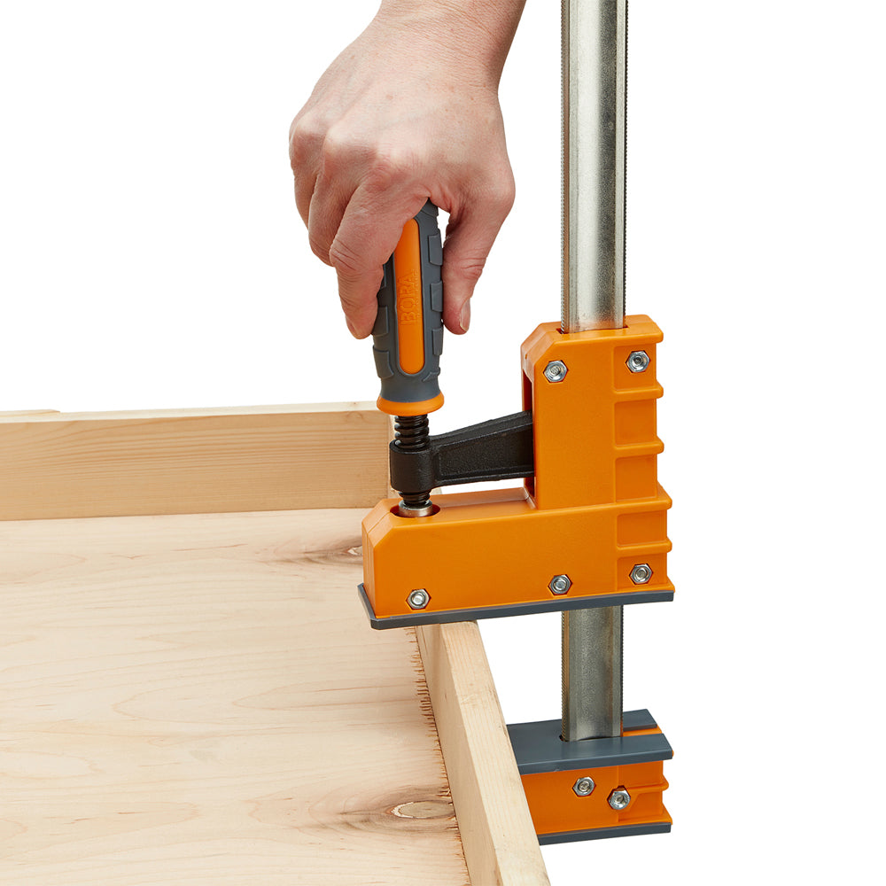 Bora knows exactly how important it is to rigidly clamp down your case goods and other woodworking projects. Rock-solid stability means more precise work, and a superior finished product that simply radiates expert craftsmanship and pride. And this Parallel Jaw Clamp is the woodworking clamp that both enthusiasts and professionals reach for when working on their projects.The fixed jaw has a 0.5deg inward facing tilt that provides positive, yet gentle clamping pressure on delicate items, yet as you increase the clamping pressure, it is forced to the parallel position. Clamps that start parallel, are often a forced OUT of true parallel as the pressure comes on, even worse as theywear with regular use.