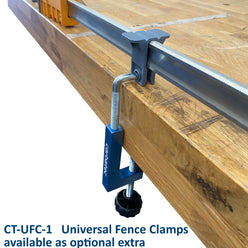 Each clamp is supplied with a removable stand-off bracket, to help prevent marring your workpiece. This bracket can also be used (with our CT-UFC-1) to hold you clamp in place while you are setting out your glue up. Like an extra pair of hands!
