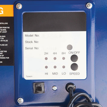 New look, new code, same great machine! We have updated the look and product code of our CTF-2,000 (now AF-2,000C), however, be assured, all specifications of this machine are the same as our beloved CTF-2,000. Once you've finished cutting and sanding operations and have turned off your dust extractor and protective mask, you might think you've been sufficiently safety conscious about protection from dust inhalation. However when you see a ray of sunlight come through window you can see that that a lot dust remains suspended in the air. This machine further enhances the safety of your workshop; by drawing air into the machine and filtering the dust then returning filtered air back into the room or shed. They can be left running quietly in the background, filtering out even the finest dust particles. To maximise your filtration capability, you can use an optional third stage charcoal odour filter that is sold separately. The standard AF-2,000C filters >99% of particles 5 microns or larger and 85% of particles down to 1 micron and features pre-set run times of 2, 4 or 8 hours. This unit is also fitted with a diffuser on the exhaust side that provides a more even spread of clean air. Suitable for hanging from your ceiling, mounting on a wall, on a stand or bench. Our AF-2,000C 1/3hp room air filter features remote control and variable extraction capacities of 800, 1,200 and 1,700cfm. Adding more air filters increases your air filtration capacity. Workshop tips:If the unit is going to be mounted to a building structure, ensure the area will support a minimum of at least 55 kg. Never mount to surfaces such as plasterboard, suspended ceiling or timber wall cladding (unless you are attaching through this, to the studs)A good rule of thumb for calculating what approximate CFM is required to effectively filter your workshop air:METRIC: Your workshop Length X Width X Height (meters) X 6. 000 = Minimum CFM required for 10X per hour exchangeIMPERIAL: Your workshop Length X Width X Height (feet) X 0. 1,666 = Minimum CFM required for 10X per hour exchangeExample: 10 m X 10 m X 3. 6 m Shed you would require 2,160cfm to filter the air 10X per hour, so two AF-2,000C running at half speed would be sufficient.