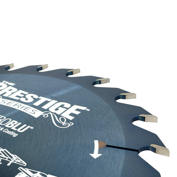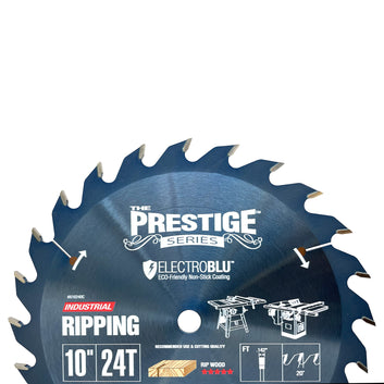 Amana's Prestige Series Electro-Blu coat blades are the top-of-the-line, premium blade offering!This blade is a classic high-end ripper for both hardwood and softwood. It features a much sought-after flat-top grind for cutting with the grain efficiently while leaving a flat bottom cut; ample gullets for fast chip-clearance; expansion slots with turbulence-reducing copper plugs; a 20° hook angle, 24 Teeth and a 5/8" Bore; with a thicker 2.4mm plate with 3.6mm kerf and mirror polished tungsten carbide tips.This is a serious and solid performer.