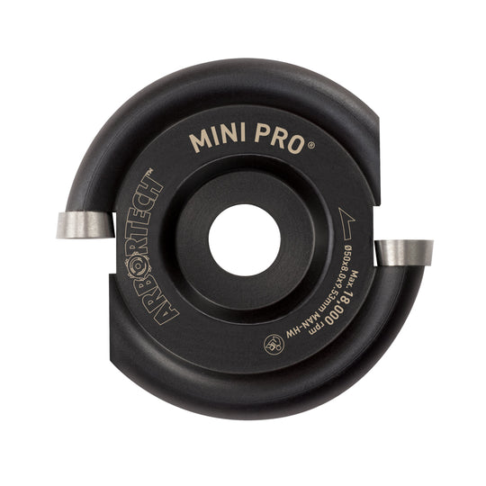 The Mini Pro is a hybrid of the Mini TURBO and the Mini Industrial Blade, offering the smoothest cutting experience of all the small Arbortech blades. This 50mm blade features large, uniform tungsten carbide teeth that cut on the periphery, providing a strong, versatile, and precise carving tool. Designed specifically for the Mini Carver, it allows multi-directional shaping with a soft touch, making side-to-side carving effortless. Ideal for projects ranging from rough shaping to fine detailing, the Mini Pro delivers consistent results on small to medium woodworking tasks.