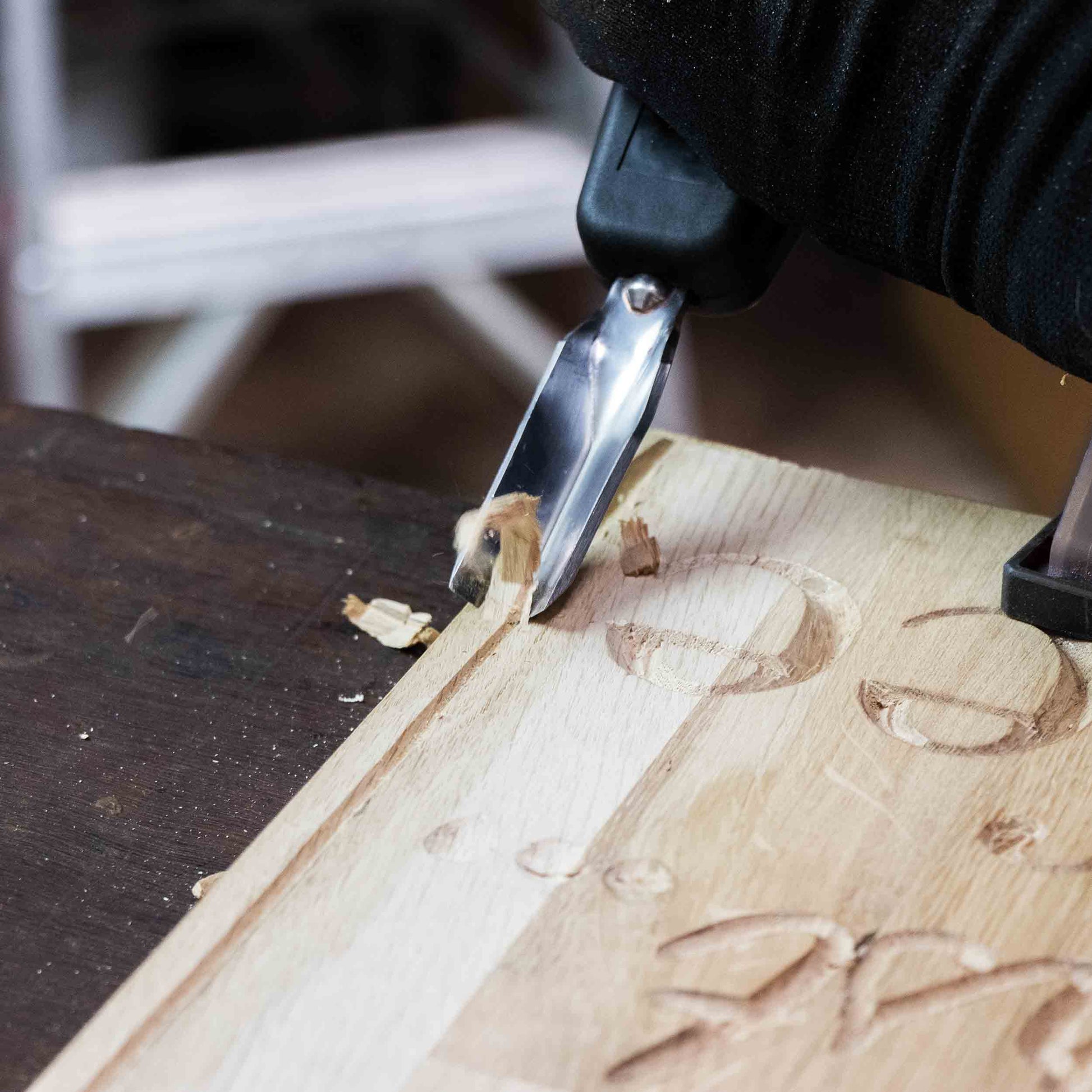 The Power Chisel is a freehand power carving tool that allows you to achieve detailed carving and chiselling just like a traditional hammer and chisel, without the physical strain. Equipped with a powerful 1000W motor and a set of 7 chisels in a convenient pouch, the chisel profiles can be changed quickly at the press of a button. Perfect for detailed carving, lettering, and adding texture to your woodworking projects.