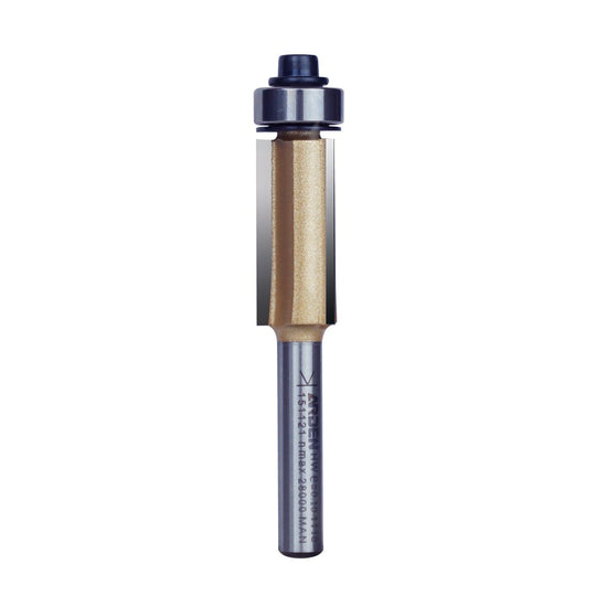 Pattern following bit used when following patterns or templates to give an extremely smooth finish using the three flute configuration. When making shaped objects such as scalloped edges, oval or roundtable tops, simply make a pattern out of material such as plywood for the bearing to follow. Also popular for laminate trimming.