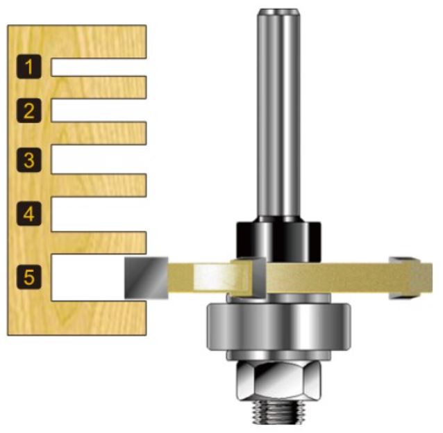 Complete with a 22mm bearing, these triple-winged cutters cut a slot 12.8mm deep. The included bearing allows this bit to be used in a router hand held, or mounted in a router table.