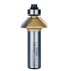 A two flute router bit for making 45° chamfers and decorative edges. The included bearing allows this bit to be used in a router hand held, or mounted in a router table.