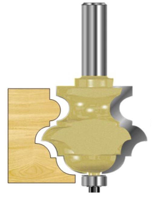 Two flute decorative moulding bit to create detail or decorative accents and feature mouldings. The included bearing allows this bit to be used in a router hand held, though will most likely be used in a router table due to the type and size of work pieces.
