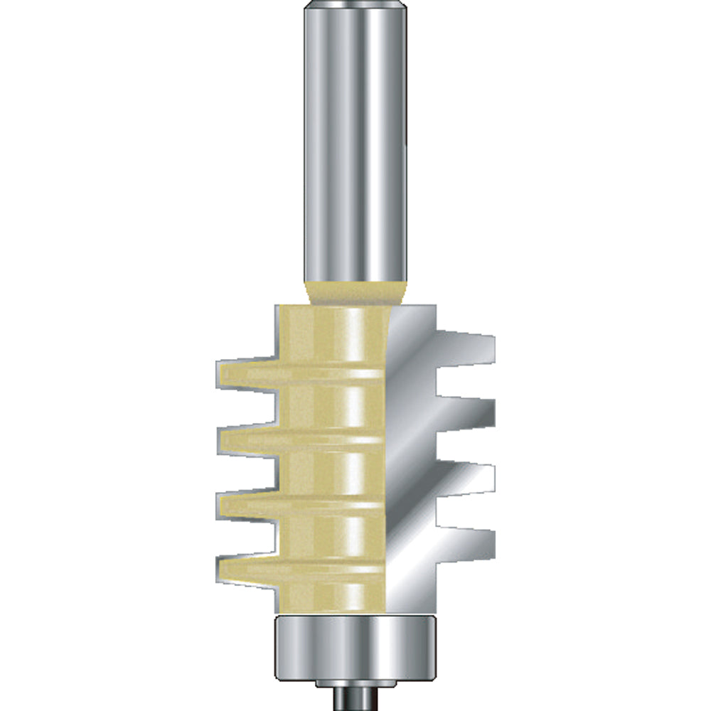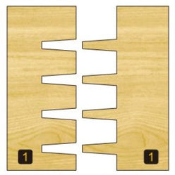 Used to make larger panels or lengths from smaller pieces, both along the length or end of the piece. The wedge-shaped interlocking fingers lock the boards together in alignment and provide far more glue surface area than a simple butt joint. The resulting join is very strong. Used in a router table, the bearing is set flush with the fence.