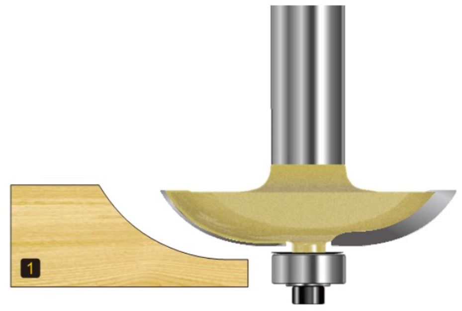 A raised panel bit with a sweeping extended cove shape. Used to create the panel component of a traditional style cabinet door in conjunction with Rail and Stile bits. These profiles need to be run at a much slower speed than other router bits due to their large diameter. Designed to be used ONLY in a router table.