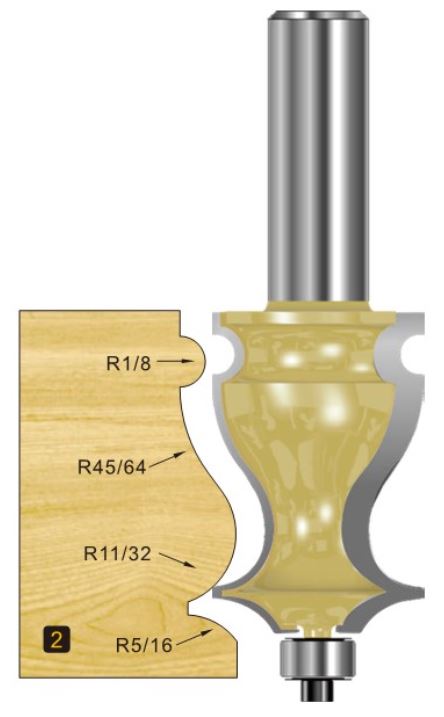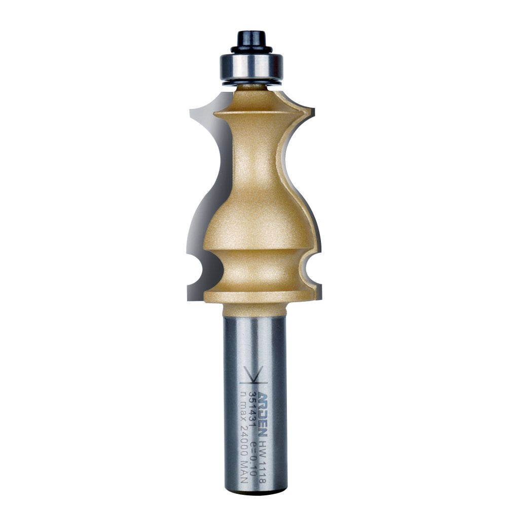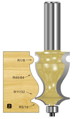 Two flute decorative moulding bit to create detail or decorative accents and feature mouldings. The included bearing allows this bit to be used in a router hand held, though will most likely be used in a router table due to the type and size of work pieces.
