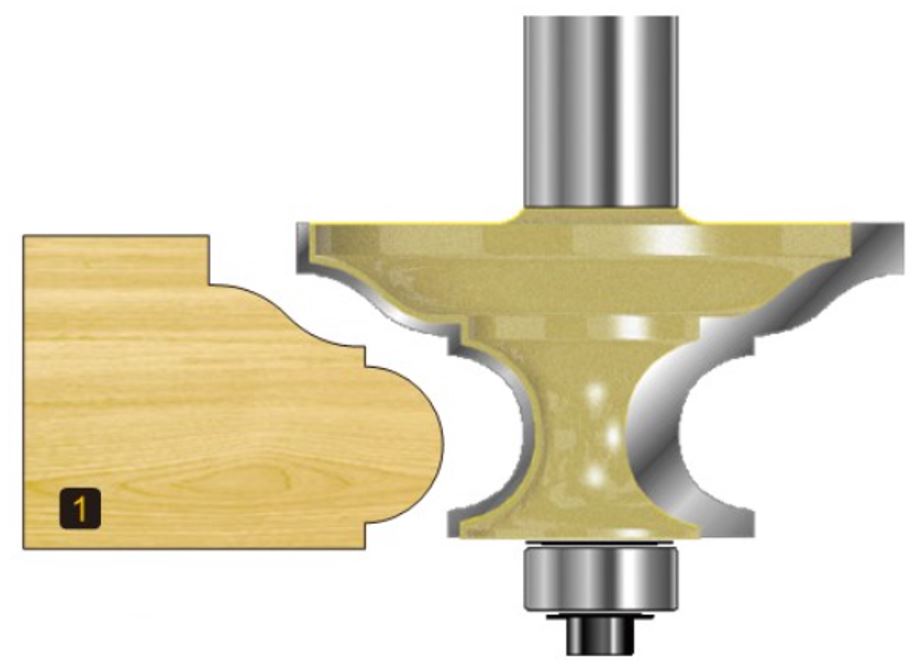 Two flute decorative moulding bit to create detail or decorative accents and feature mouldings. The included bearing allows this bit to be used in a router hand held, though will most likely be used in a router table due to the type and size of work pieces.