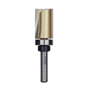 Two flute carbide tipped cutter with enclosed bearings. The top mounted bearings, and lower cutters makes for easy template routing with the router being positioned on top of the workpiece allowing for full router control.