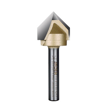 Two flute bit, ground from one piece to a 90° point, ideal for sign making and adding detail and decorative accents. For use in routers hand held, mounted in a router table or CNC.