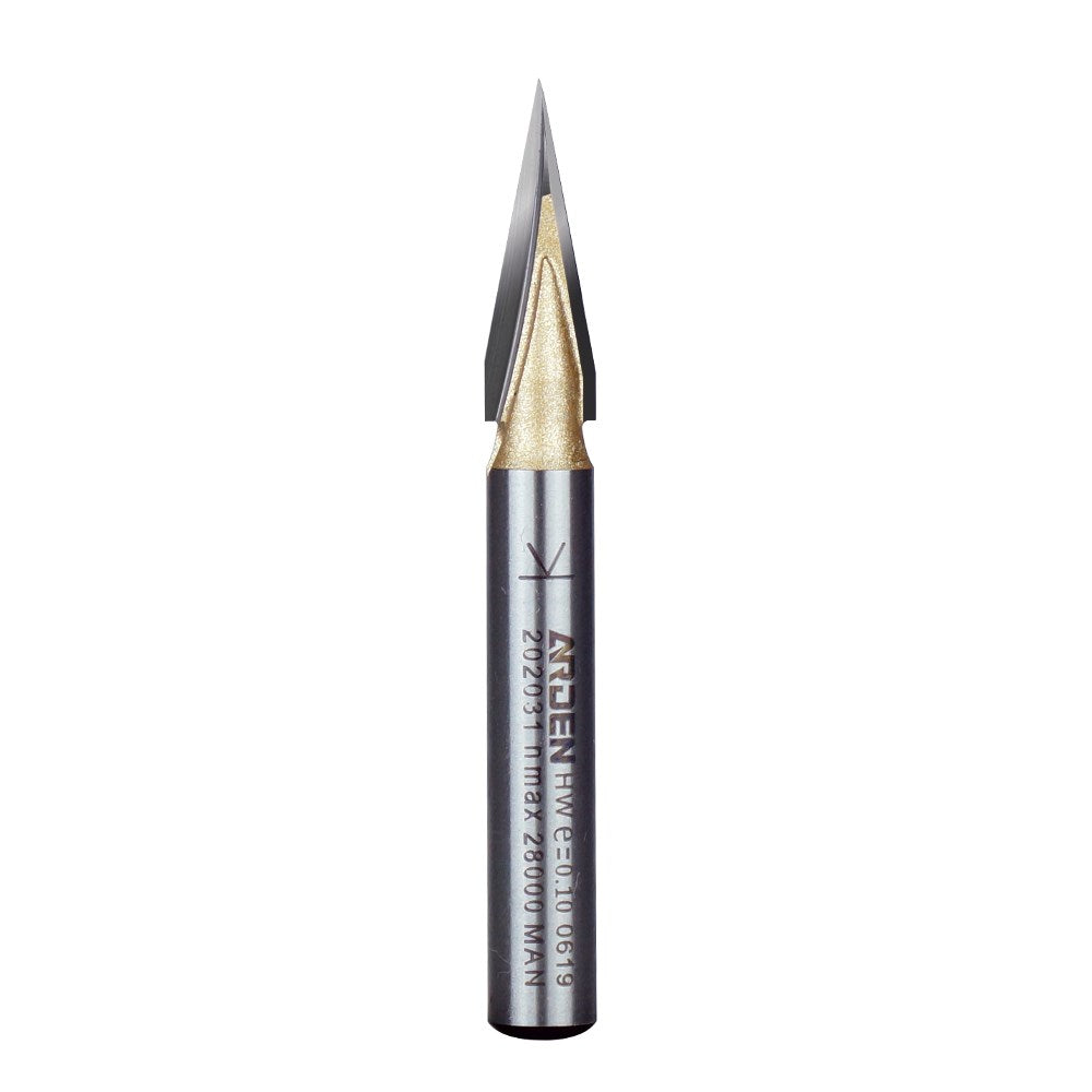 A bit useful for imitating V-jointed tongue and grooves. Also used for adding detail and decorative accents. For use in routers hand held, mounted in a router table or CNC.