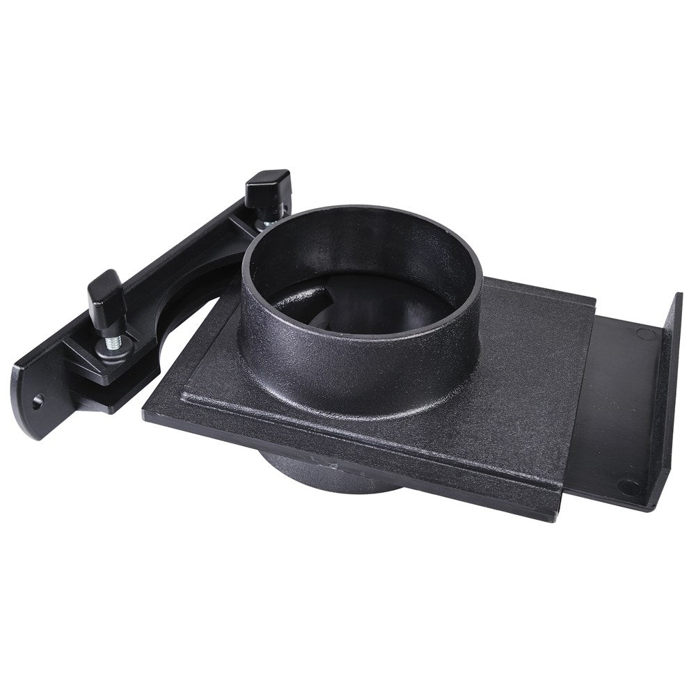 Carbatec's Blast Gate Mounting Bracket mounts to wall and holds a blast gate securely, then with a hose connected to both sides, the blast gate can then easily be opened or closed easily. This controls the airflow coming from various machines around the workshop. Closing airlines from machines not in use, will maximise the flow of air from the machine that is in use.