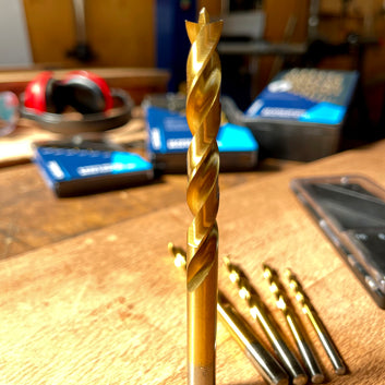 Brad Point Bits enable precise drilling in timber, making them perfect for pocket holes and through-holes. The spur design makes for a smooth hole with reduced splintering and tear-out. HSS Fully Ground metal Bradpoint Bits are made from high-speed steel. Full grinding during the production process results in a very sharp drill with high precision. The Titanium-Nitride (TiN) coating decreases heat build-up, extending edge life. We've packaged the 5 most popular metric bit sizes together to create this 5 piece set! Includes: 4, 5, 6, 8, & 10 MM sizes in a new durable storage case! Specifications HSS, Fully Ground, TiN