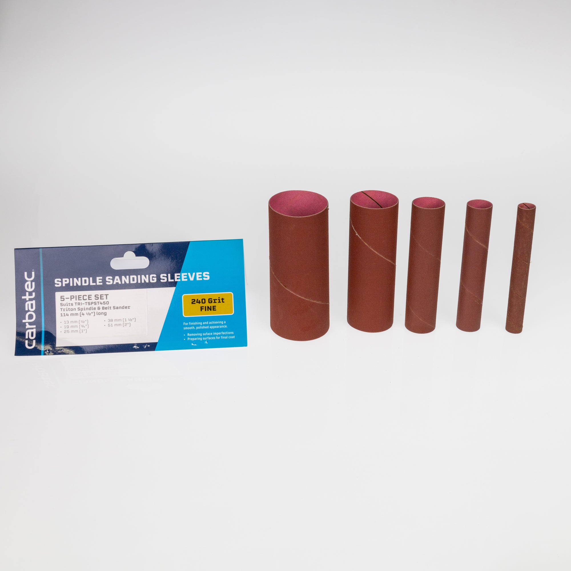 Carbatec 5Pce Sanding Sleeves 240 Grit to suit Triton TSPST450 Spindle Sander