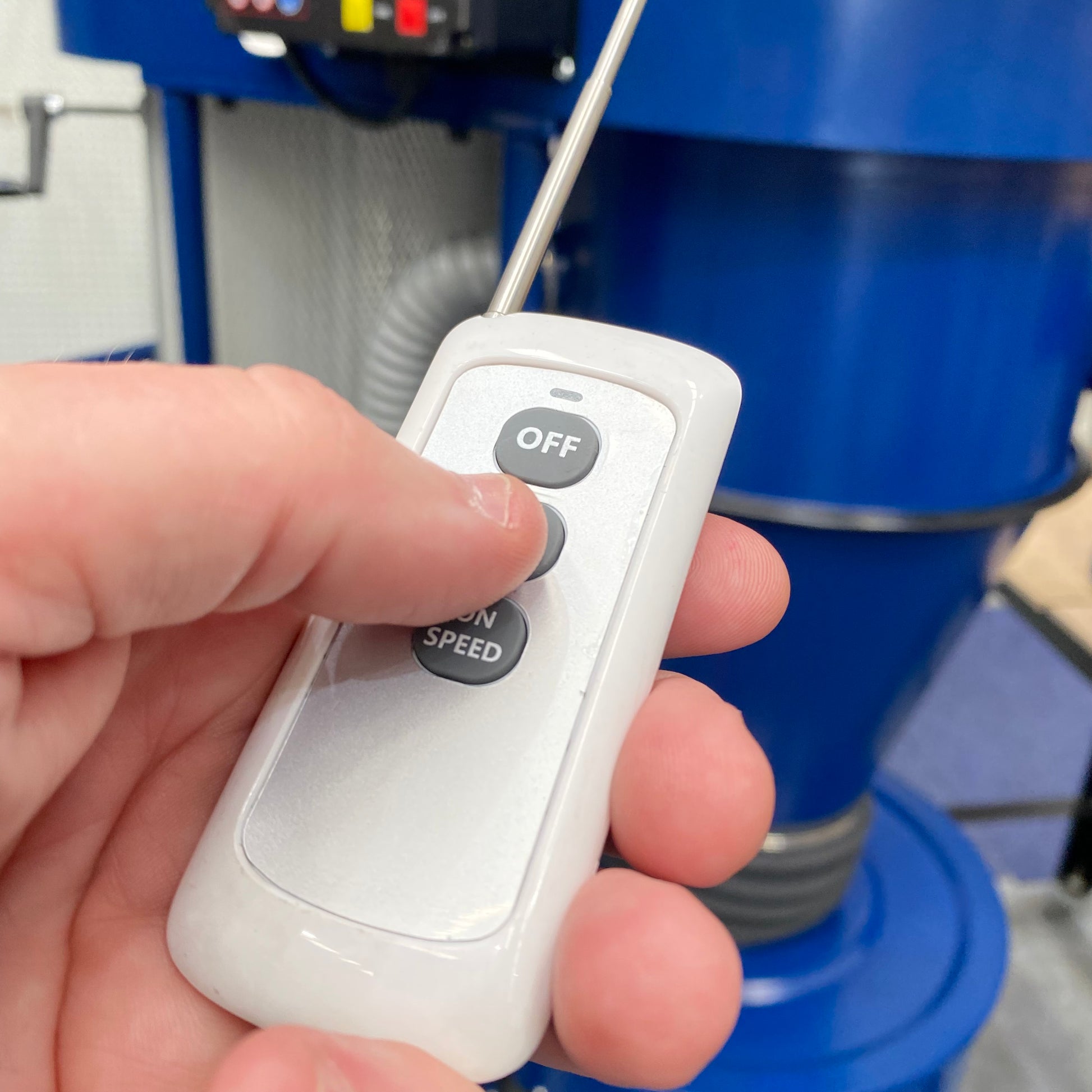 A cyclone dust collector works very differently from a traditional bagged type collector. This professional model has many features found on larger industrial units but with a far smaller footprint. It is designed to power smaller workshop collection systems while still being mobile enough to move from machine to machine if you prefer. The included remote control will allow you to switch your collector on/off or switch it on for a set period. We have also included the unique choice of a bag, or bagless collection system. Reusable plastic bags in your collection drum are quick and convenient for waste disposal, but they become waste themselves at some point. Mindful of our impact on the planet, we have designed our cyclone collector to run with or without these collection bags. Simply remove the integrated bag retention system and utilise the mobile drum itself as your collector. A cyclone has separate impeller housing attached to the top of a cone-shaped funnel. The sole purpose of the impeller is to create a high-volume airflow, which is drawn through the cone, creating a higher-pressure vortex (or cyclone) of incoming air. This fast-spinning air within the funnel separates the heavier wood chips and large dust particles from the fine dust, causing them to drop into the collection drum below (Stage 1). The very fine dust and the clean air pass through or are collected by a very fine, pleated cartridge filter (Stage 2). This two-stage process of separating the material reduces the rate at which the filter will clog up. This reduced clogging allows more air through the collector system. Our standard cyclones are highly efficient at removing dust particles down as fine as 1 micron; in fact, 99% efficient! Another advantage of this design is that the wood chips don't come into contact with the impeller (which would normally disrupt the airflow, dropping efficiency). This means that cyclones are often rated at lower CFMs (compared to traditional collectors), but the actual airflow and pressure in the dust network are kept running at their maximum for much longer. INTENDED USE:This dust collector only intends to collect wood dust and chips from woodworking machines. Do not use this dust collector to collect metal, dirt, pebbles, drywall, asbestos, lead paint, silica, liquids, aerosols, or any flammable, combustible, or hazardous materials. The diameter of the hose and the complexity of your dust network can directly influence the performance of your dust collection system. Hoses that are too small in diameter or too abruptly reduced from a large diameter can result in poor airflow and potential blockages. Flexible hoses that are run over long distances will also result in poor airflow, and dust can build up in the hoses. Changing hose sizes and lengths (increase or decrease) affects system airflow and static pressure in different ways. Changing corrugated or flexible hose to smooth rigid ducting will positively affect airflow efficiency. Consider one or all of these improvements: Shortening and limiting the runs of flexible hose (in favour of rigid ducting) can reduce your loss in airflow. Alter the layout of your workshop so the heavy waste producers are closer to your collector. Step down your hose diameters gradually and further away from the collector. This keeps a good balance between airflow and pressure. Avoid increasing hose diameters, as airflow, and pressure are both reduced.