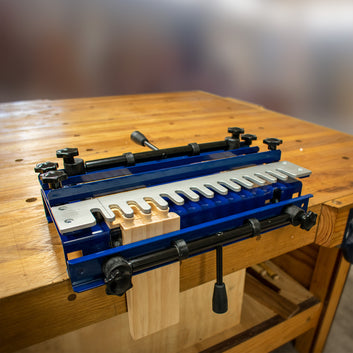Transform your drawer construction with the Carbatec Half Blind Dovetail Jig 300mm, designed to deliver professional-quality joints every time. This precision-engineered jig cuts both pins and tails in one seamless operation, eliminating the guesswork and ensuring perfectly fitted joints for your furniture projects. The heavy-gauge steel construction and CNC-milled aluminium template provide the stability you need for consistent results across multiple projects. Quick-action cam levers secure your timber firmly during cutting, while adjustable stops make positioning boards effortless and accurate. Whether you're crafting elegant drawer boxes or delicate jewellery storage, this complete system includes everything you need to achieve flawless half blind dovetails.