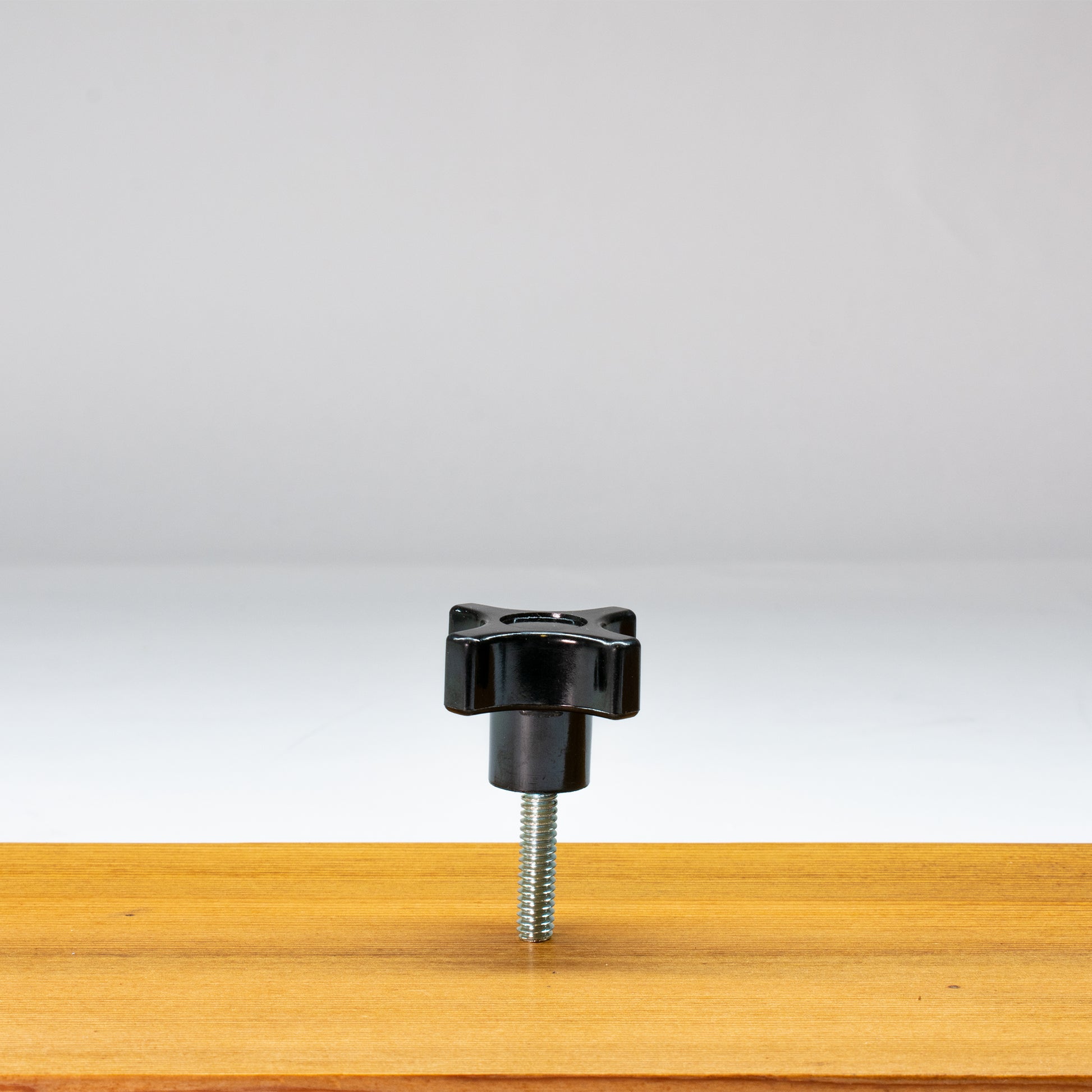 Carbatec's range of quality hardware knobs, handles, inserts and bolts, are perfect for shop made custom jigs, creating purpose-built hold downs, slides, tools and many other handy inventions in your workshop. They are also great for topping up your jig hardware kits, or replacing the odd lost knob or T Bolt from many different accessories. Available in small pack sizes (quantity depending on type of hardware). The Small Cross 4 prong Knob is 35 mm diameter with 1/4" x 20TPI 25 mm stud.