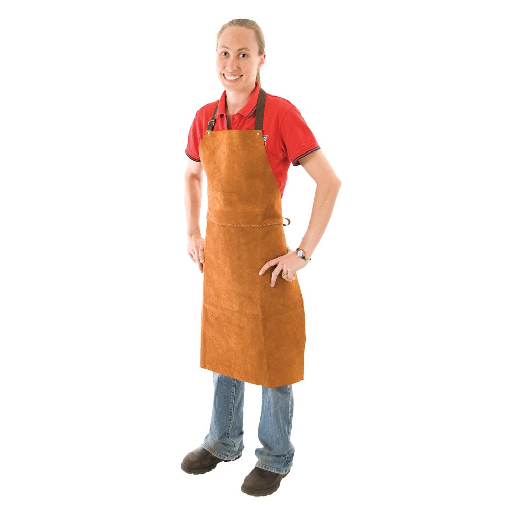 This wonderful all-purpose Carbatec leather workshop apron is perfect for basic chest to knee protection in the workshop, while leaving your arms free to work.