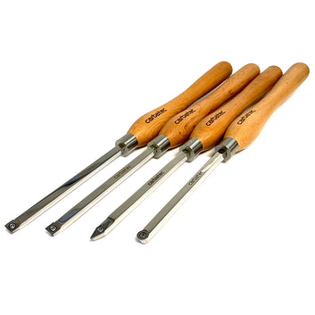This versatile 4-piece scraper set is ideal for woodturners working on midi and full-size lathes. It excels at a range of tasks, from turning pens and craft-based spindle projects to shaping bowls and other vessels. Its design offers you fine control, making it easier to achieve a smooth, professional finish on your work.
