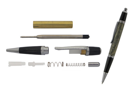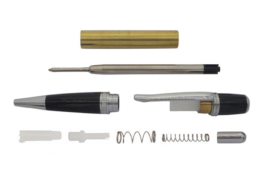 Chrome plated with combination of Black Chrome Click Pen Kit exhibits mystery, flair and elegance. With its streamlined look, striking black components and smooth click mechanism it will surely compliment any executive's desk. Accepts Parker style ball point refills, easy to make with a single tube. Plus, the plating offers a bright pure gold/chrome colour that will give your project a rich and luxurious look. Note, Package sales as in single pack.
