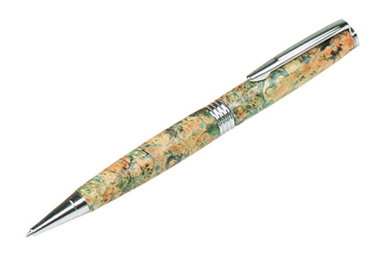 A variation of fency slimline twist pen, the Carbatec Streamline Pen Kit features a double-side tapered design with a 4-ring center band and special streamline clip. Additional heft and tapered barrel design give this pen a retro look and feel. Cross type ballpoint refill Twist operation Note, Sold as a pack of 5.