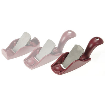 The curved palm plane has the sole rounded side-to-side (1 1/2" radius) and front-to-back (12" radius), making it ideal for working hollows such as on chair seats. Also, it has a finely milled sole. The investment-cast steel bodies are accurately machined and have a 45° bed angle and a fixed mouth.