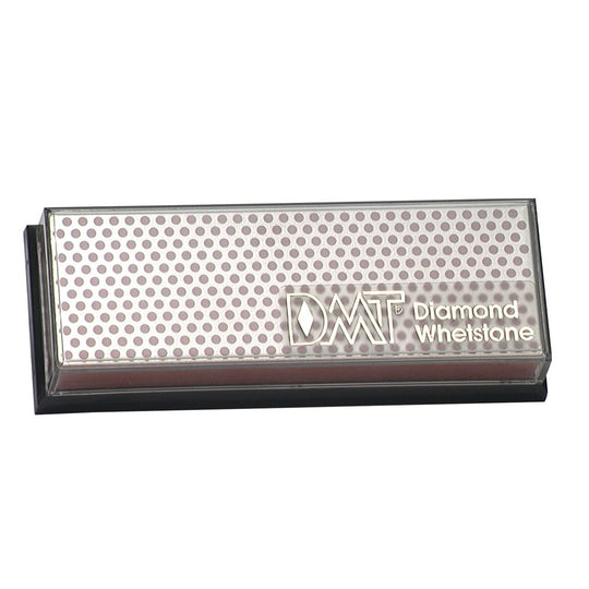 Featuring the signature polka-dot pattern innovated by DMT¬; Diamond Whetstone» sharpeners are often imitated in appearance; but never equalled in quality or performance. The interrupted surface of tiny wells trap metal debris to ensure clean; continuous edge contact while the superior diamond does its work. For the quickest; cleanest sharpening; there truly is no substitute. Comes in a Plastic Case. Fine