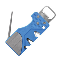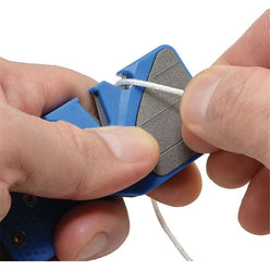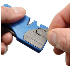 Featuring diamond sharpening base on the flat pad, with V-slots in Tungsten and Ceramic and a fold-away rod for sharpening serrated blades and saws, this handy device covers all bases.Run your dull blades through the coarse Tungsten V-slot before moving on to the fine Ceramic V-slot to finish the job. Fold out the serrated sharpener to hone serrated knives and saw blades. Use the flat diamond-based pad to sharpen fish hooks, arrow points and more. The options are nearly endless on this one-of-a-kind, convenient tool.If all the sharpening options weren't enough, the PocketSharp Plus also has a handy cord cutter and bottle opener built in, and hole to tether it to keep it secure.