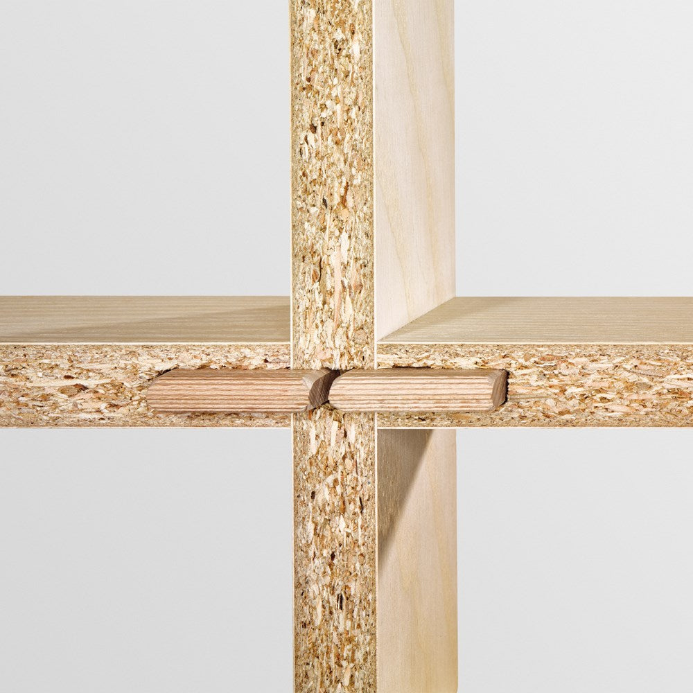 The special shape in combination with expanding glue pockets and longitudinal grooves gives the tenon a secure grip, to give a twist-proof connection with maximum stability. Added to this is significantly faster processing: The first tenon hole is aligned with extreme ease and routed accurately using flip stops. It immediately secures the workpieces that are to be joined so that they are exact and flush with the edge. Tenons are 36mm long, ideal for joining two bases to a centre panel on 19mm thick T cupboard structures (centre panel joint).