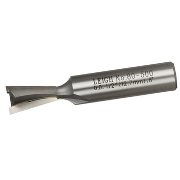 Replacement router bit for the Leigh RTJ400 dovetail jig. Featuring a 1/2" shank, and used with an E10 guide bush rather than the E7 guide bush many of the other jigs use. The 1/2" shank allows the bit to be longer, making router table use possible.