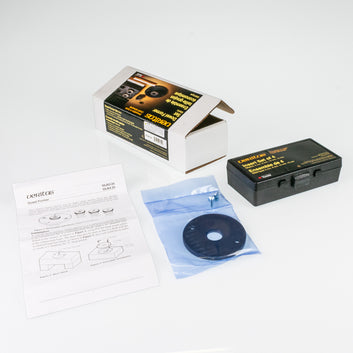 This dowel former allows you to make dowel pins of whatever length you need. You simply drive an oversize piece of wood through the sharp-edged hole of the solid A2 tool steel insert to shear excess material from the dowels. The 3" (76mm) diameter mounting plate (which can be used over a 3/4" or 20mm dog hole) has two screw holes for permanent mounting; the interchangeable inserts snap into it securely.