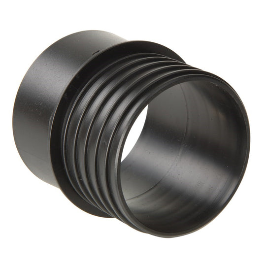 Threaded dust extractor fitting that will recess into standard ductaflex type hose for a secure push fit on a 4" dust port. Screwing straight to a 4" hose, the other end is tapered to fit a machines 4" dust port.