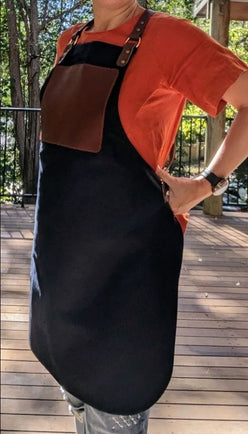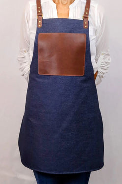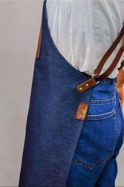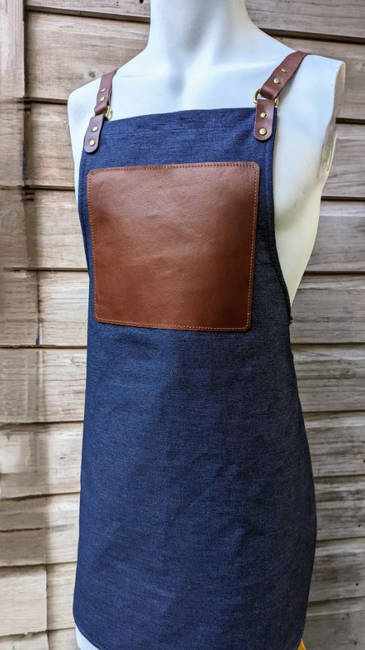 En Mina Leather products are individually handcrafted from premium Australian materials, on the Sunshine Coast of Australia, by Isabel.This Carver's Apron features a light denim fabric with a full-grain tanhide patch and straps. The core fabric on this apron was selected due to its light, breathable qualities. It is equally comfortable on a hot summers day, as it is over layers in winter. It doesn't sit heavy or restrict movement, yet provides a protective layer for your chips and shavings, while the full tanhide leather patch provides robust protection against blades or stock holding, when whittling close to the body.So whether Netsuke is your game or you're carving the worlds finest spoons, you can do it in style with En Mina's Carving Apron!The apron measures 720mm top to bottom and 620mm at its widest point. The leather patch is approx 220x190mm. Two full leather cross-over straps are adjustable, making this apron "one-size-fits-all".This apron will quickly become a loved item in your workshop and all the while, you can be satisfied you just supported a small local artisan's work. Supplied in an Australian made cotton gift bag.About the maker - With a commitment to producing high quality goods, Isabel individually hand makes every single En Mina Leather product. Quality manufacture starts with quality materials, so naturally, only the finest Australian leather is used. You also won't find any plastic here - all En Mina products are supplied in hand-made cotton bags, supporting yet another Australian business! With attention to detail only found in individualy crafted goods, En Mina Leather goods are the perfect gift for any woodworker.