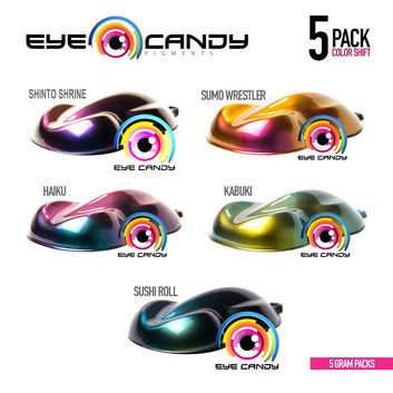 ColourShift Mineral Mica Multi Pack!This pigment set includes 5 colours in 5 gram packs (25 gram total) in - Haiku, Kabuki, Shinto Shrine, Sumo Wrestler and Sushi Roll! See the "inclusions" tab for more detail on the colours.Colourshift pigments are very specialised fine titanium dioxide mineral micas. As the name suggests, these "shift" colour as you turn them to look from different angles, such as Purple to Orange hues, Blue to Red, Gold to Green etc. Colourshift pigments can be used in any type of clear substrate. Best results are over a black base, but various coloured bases will affect the overall appearance.Ideal for DIY craft use, such as automotive, woodworking, plastics, slime making, homemade bath bombs and jewelry, melt & pour, lip balm, acrylic painting, screen printing, candle making, and more.SAFE, NON-TOXIC, CRUELTY FREE - All our resin colour pigments are stain free, gentle on skin and won't cause irritation. However, as with any additive, we always recommend you test a small area before full use to ensure it allergy safe.
