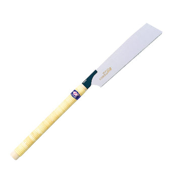 This Fine Rip Saw features a traditional Rattan wrapped handle that may be held with two hands for a long steady cut or for small precise cuts by holding the blade end of the handle with the fore finger resting along the back of the spine.