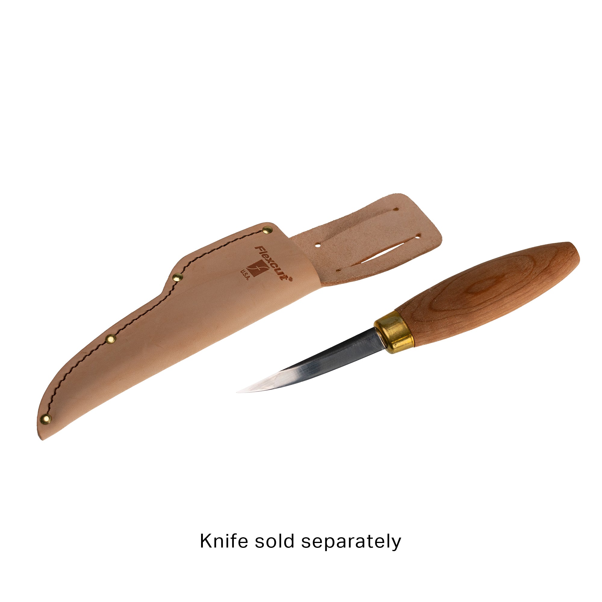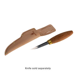Flexcut Leather Sloyd Knife Sheath fits our KN50 Sloyd Knife and KN53 Stub Sloyd Knife. There is a blade stop at the bottom of the sheath to keep the tip of the blade from cutting through. The metal belt clip easily attaches to any belt style.